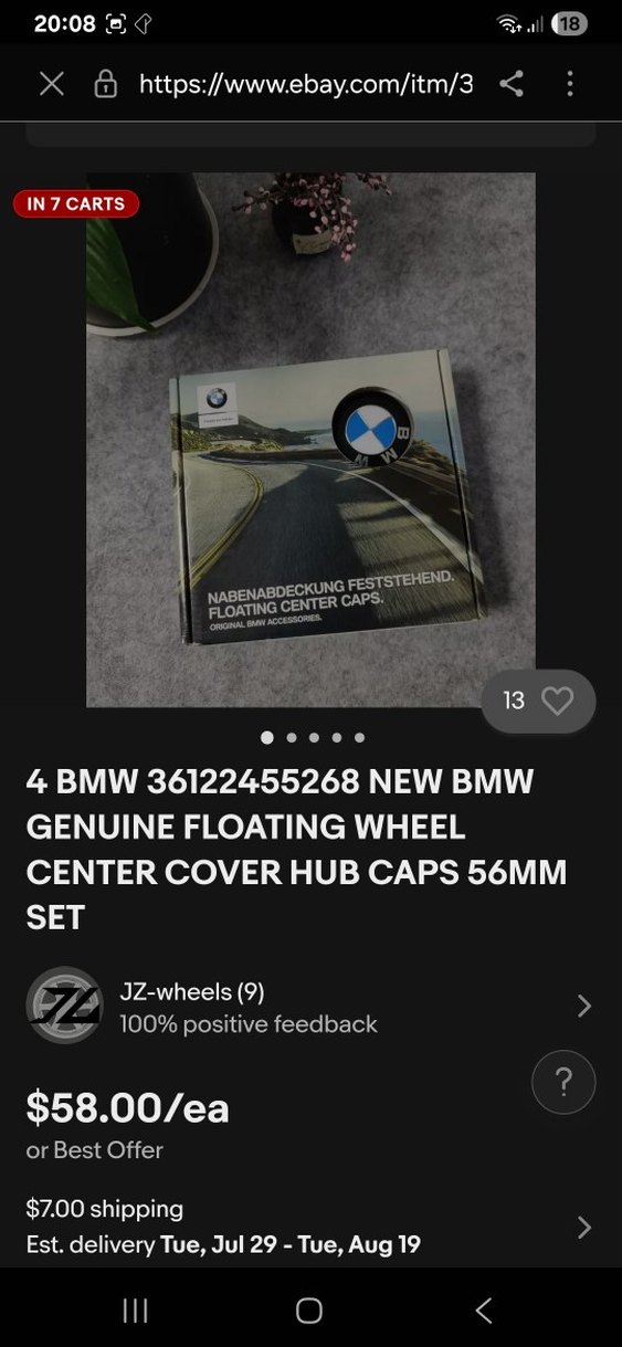 Bu set, her biri 56mm olan dört adet orijinal BMW yüzen jant göbeği kapağı içerir. 4 adet kullanıldı sorunsuz
