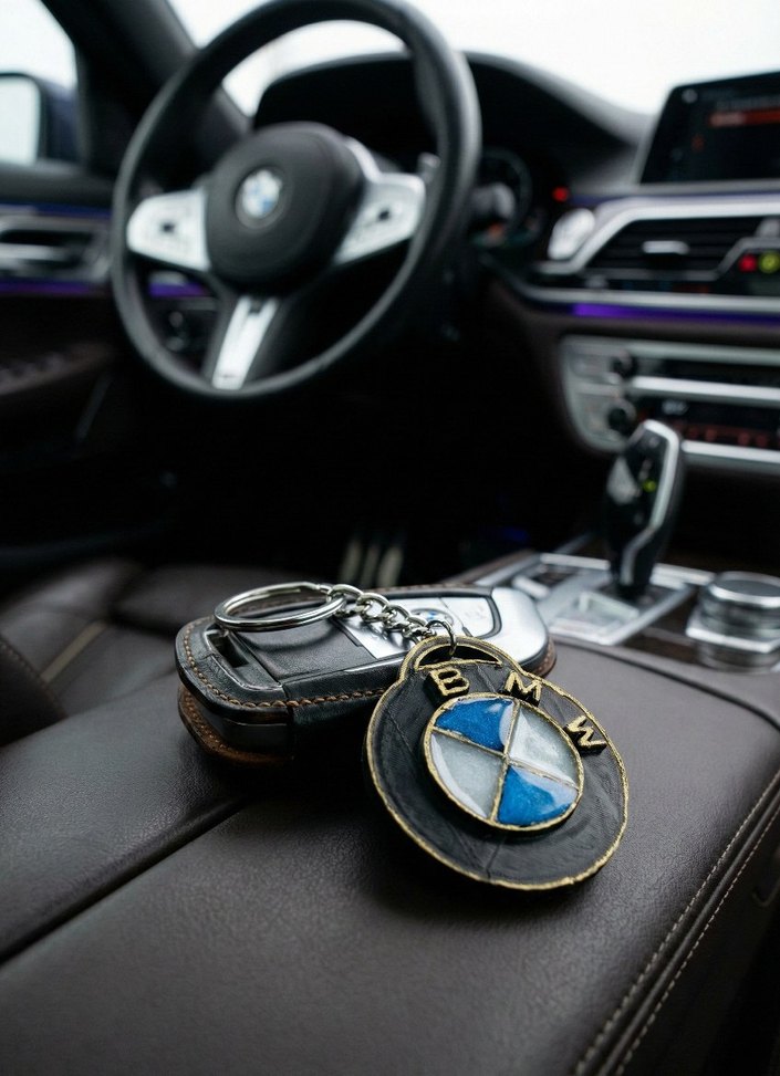 BMW Logolu 3D Baskı & Epoksi Tasarım Anahtarlık (Gold Detaylı)