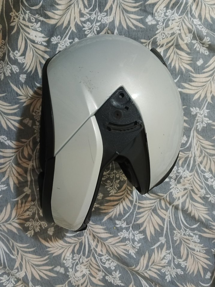 Beyaz renkli, minimalist tasarımlı motosiklet kaskı. Plastik malzemeden üretilmiş, tokalı ve sağlam yapıya sahip. ️