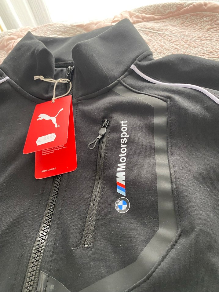 Siyah BMW Motorsport sweatshirt, fermuarlı cepler, uzun kollu ve bisiklet yaka. Yumuşak fleece kumaştan, sokak stili ve spor şıklığını bir araya getirir L beden orijinal sıfır