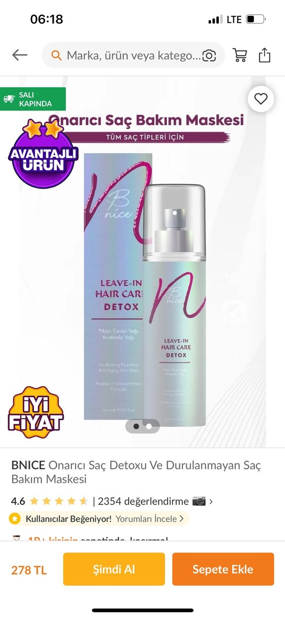 BNICE onarıcı saç detoxu, narenciye ve avokado yağı ile zenginleştirilmiş, durulanmayan saç bakım maskesidir. Tüm saç tipleri için uygundur.