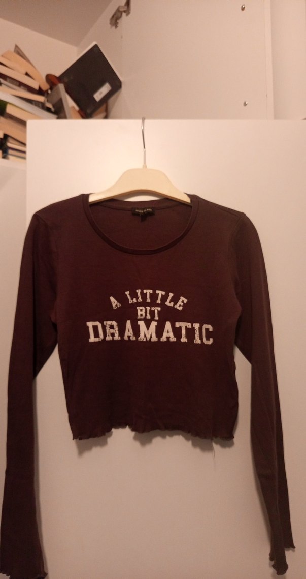 yuvarlak yakalı ve uzun kollu kadın crop