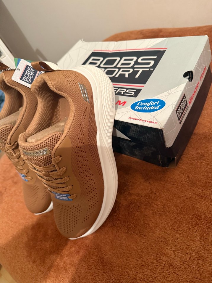 Bobs Sport kahverengi kadın sneaker, dolgu topuklu ve cırt cırtlı, kauçuk tabanlı ve baskılı detaylara sahip, trend sokak stili için uygun.