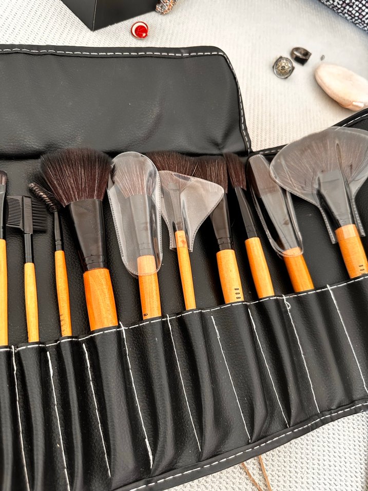 Siyah deri, bağlamalı , makyaj fırça seti. Boby brown. Amerikandan hediye geldi. Kartını bulamadım. Çoğu Hiç kullanılmayan fırçalar. sadece iki far fırçasını kullandım. Profesyonel makyaj yapmadığım için satıyorum
