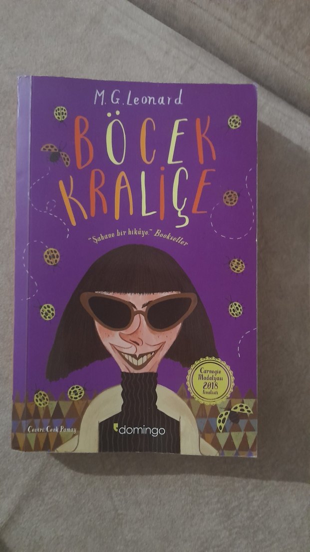 sadece ilk sayfada isim yazılı ..M.G. Leonard'ın Böcek Kraliçe adlı mizah kitabı, eğlenceli bir hikaye ve renkli çizimlerle dolu. Domingo yayınevinden, 2018 Carnegie Madalyası sahibidir.