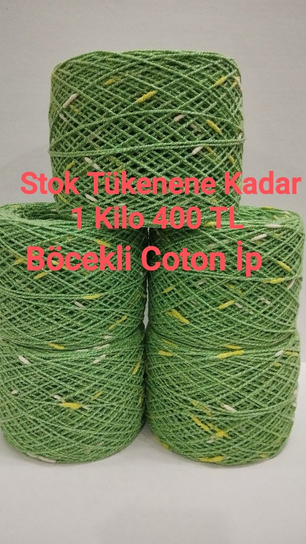 Yeşil böcekli pamuk ip, stok tükenene kadar kilo ile satılmaktadır. 1 Kilo Fiyatı