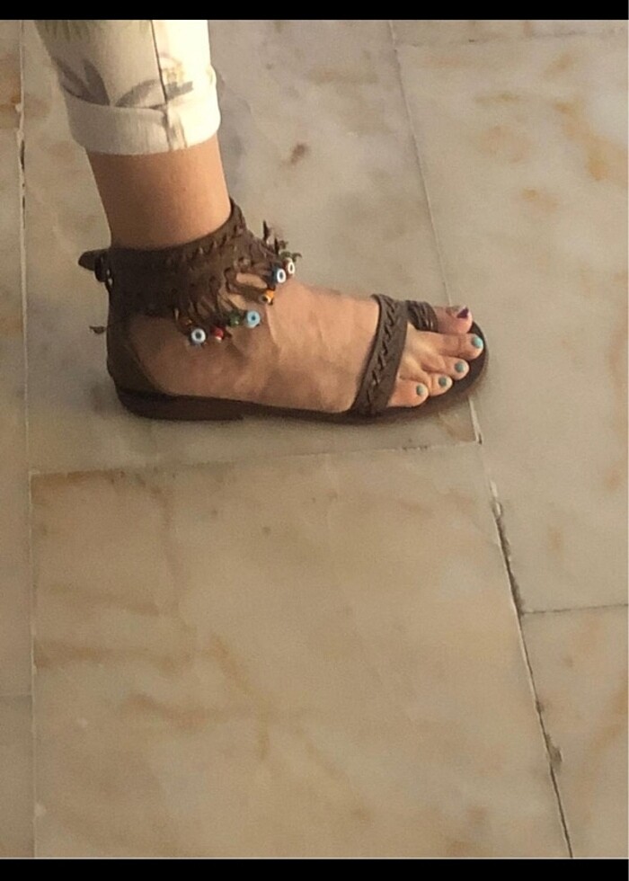 #hakiki #deri #elişi #kahverengi #boncuk detaylı #özel yapım #bodrum #sandalet #39 numara