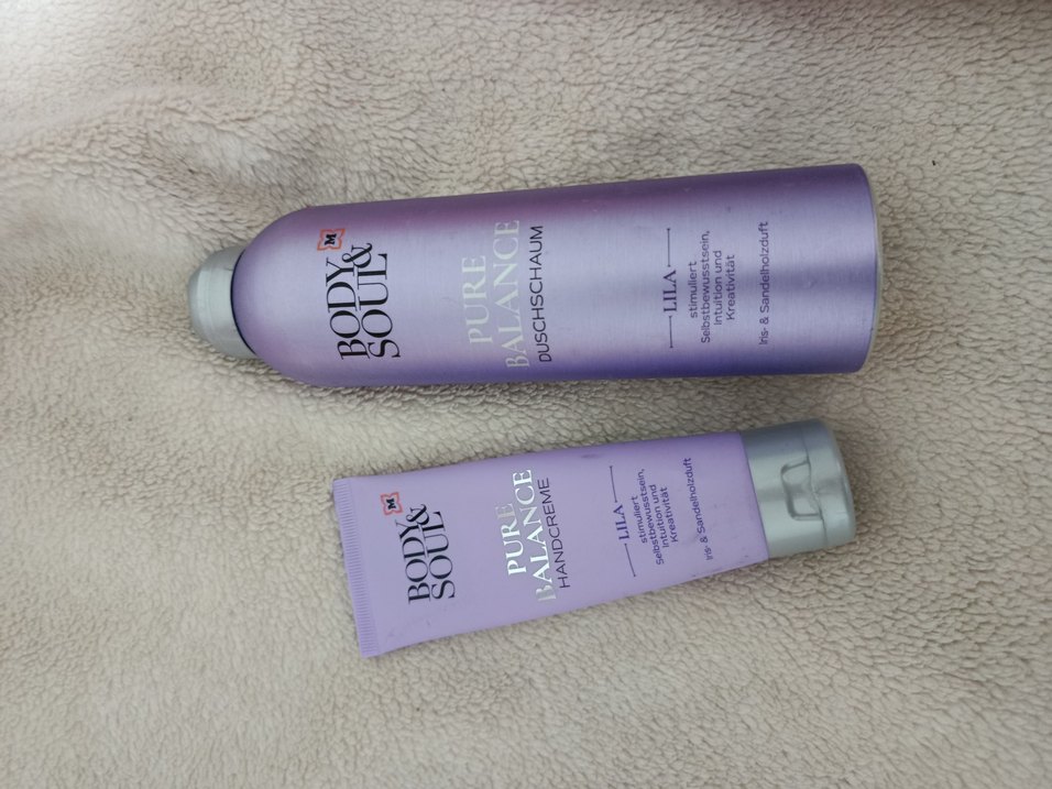 Body & Soul Pure Balance lila kokulu köpük duş jeli ve el kremi, nazik temizlik ve bakım sağlar.
