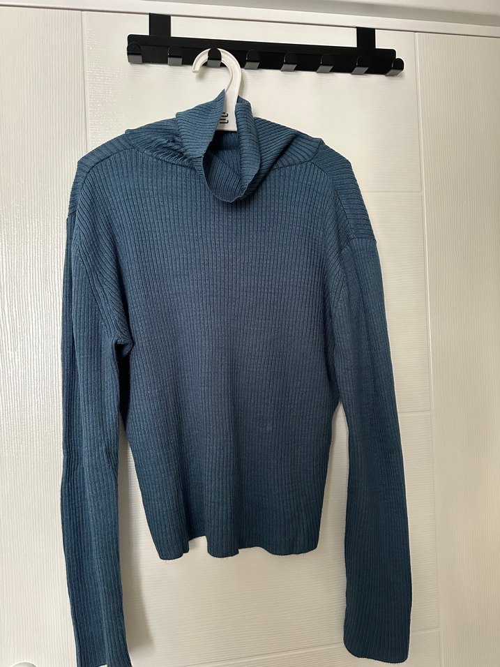 Boğazlı, uzun kollu, triko örme ve ince keten kumaştan yapılmış, gri mavinin sakin tonlarında, normal midi boyda ve desen içermeyen, rahat ve salaş normcore tarzda kadın kazak. Herhangi bir kusuru yoktur standart bedendir açelyadan almıştım.