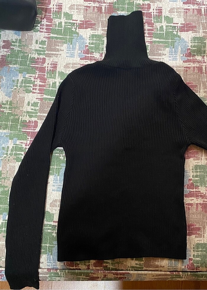 Boğazlı Balıkçı Yaka Triko Siyah Kazak Trendol kazağıdır. M beden. 1-2 kez giyildi. Omuzlarım geniş kolları kısa geldiği için L bedenini aldım bu yüzden satıyorum.