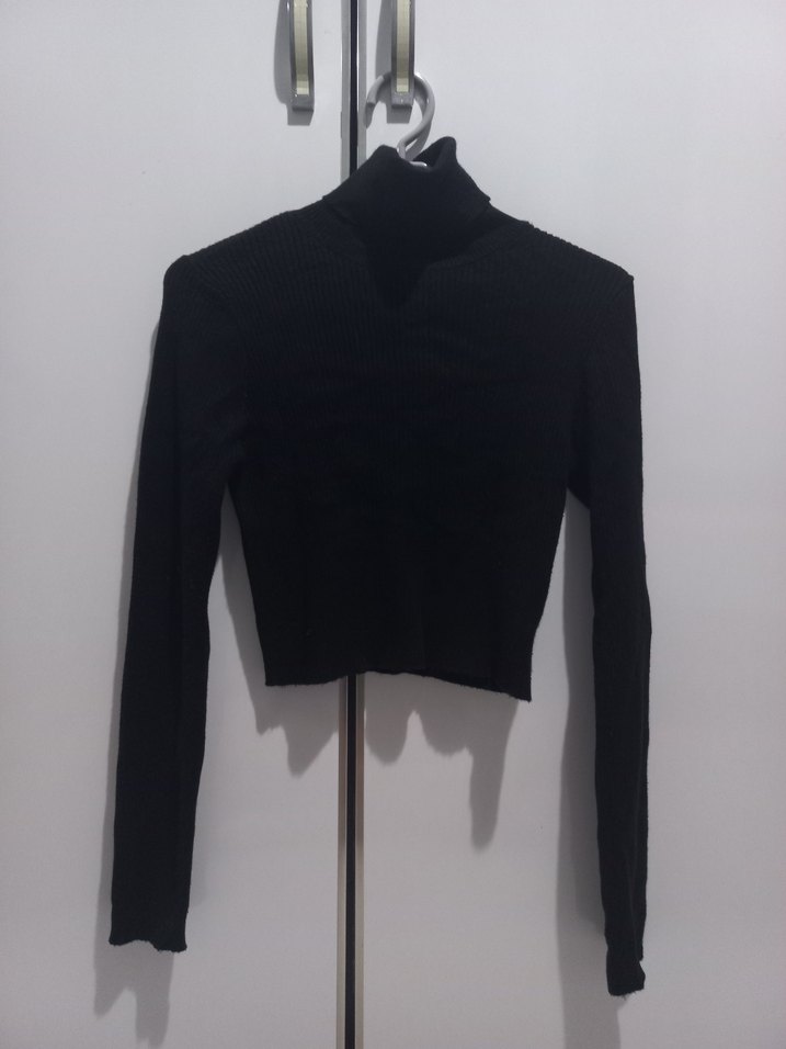Yumuşak ve sıcak kumaştan, yüksek yakalı ve uzun kollu, vücuda oturan siyah kadın triko. Minimalist gotik tarzıyla günlük kullanım için zahmetsiz şıklık sunar.