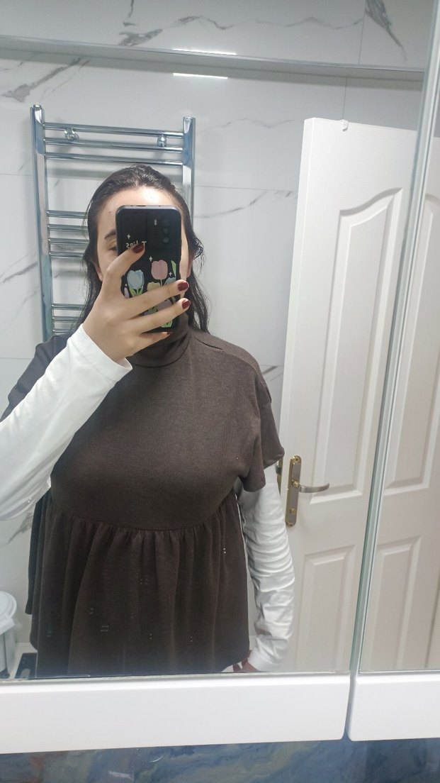 Boğazlı, kısa kollu salaş bluz, yumuşak kumaştır. rahat kesimiyle günlük kullanıma uygundur. sadece birkaçkez giyilmiştir.