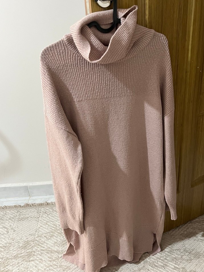 Uzun kollu, boğazlı kadın kazak. Yumuşak triko kumaştan, uzun boylu ve desensiz tasarımlı, günlük kullanıma uygun.