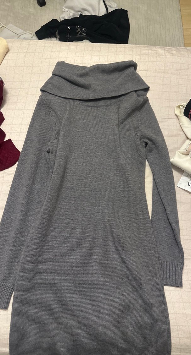Boğazlı uzun gri elbise hiç kullanılmadı