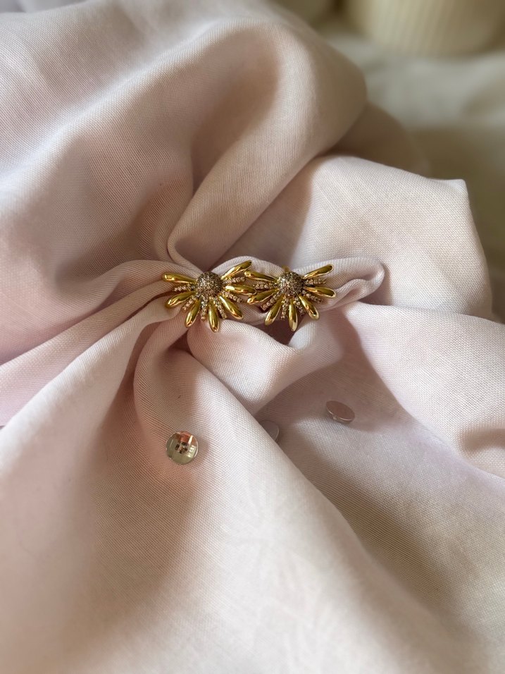 Bohem Altın Mini Çiçek ÇelikKüpeler