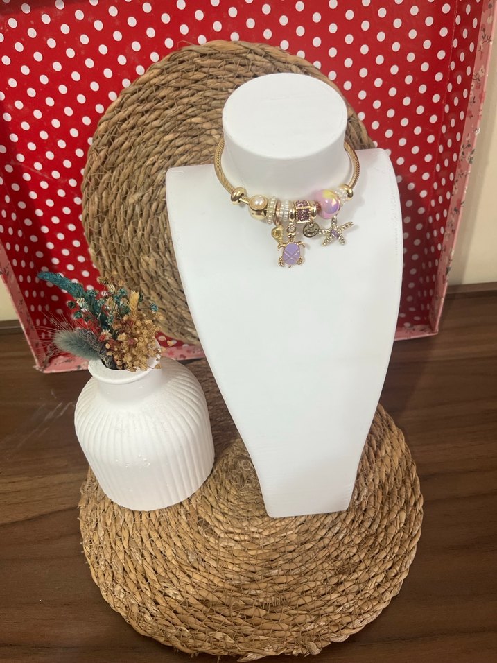Pastel boncuklu ve nakışlı detaylara sahip altın renkli bohem bileklik, günlük kullanım için uygundur.