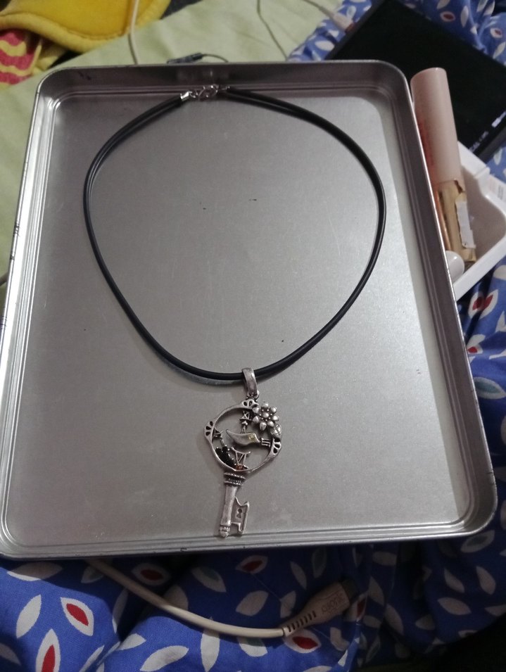 Bohem ve gotik tarzda, zincir detaylı anahtar figürlü siyah kolye. Normal midi uzunlukta, günlük kullanıma uygun.