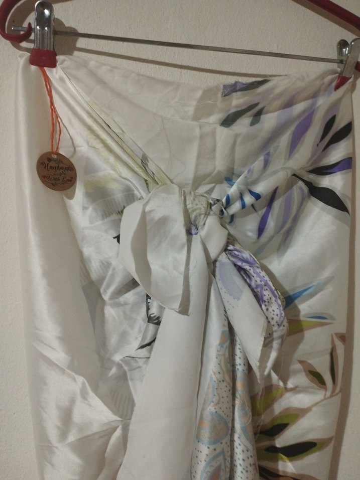 Bohem tarzda, açık renk beyaz pareo, bağlamalı ve yumuşak kumaşlı, tie-dye desenlidir. tek ebat bağlamalı. Dikişsiz.