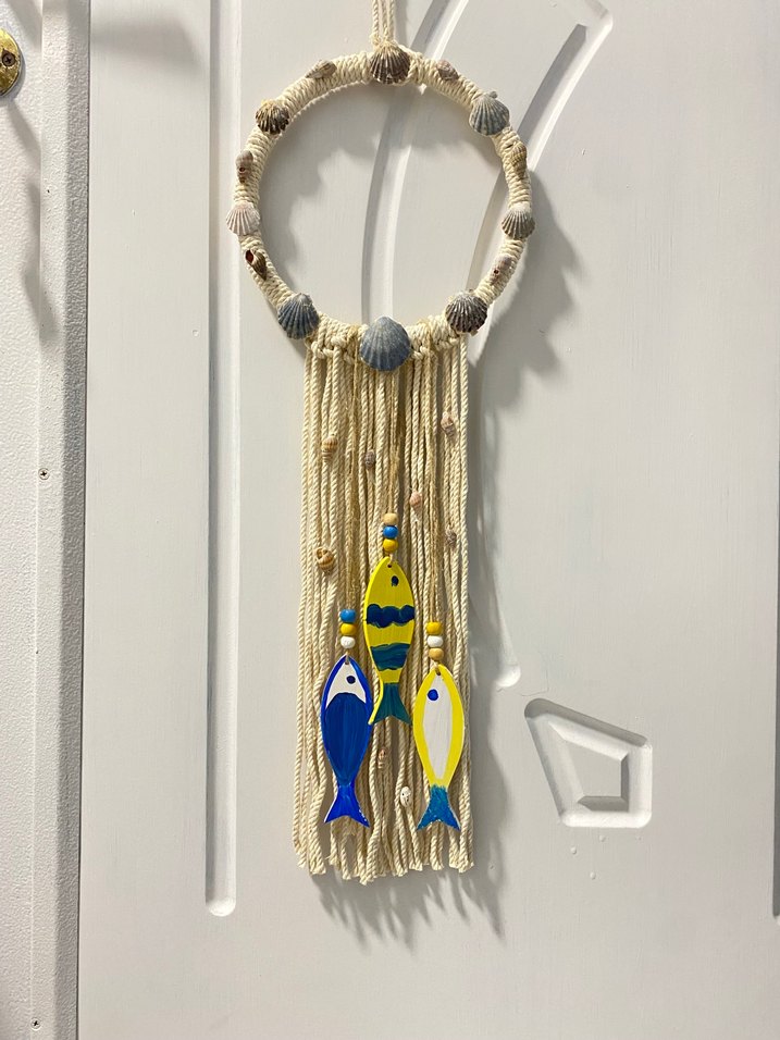 Bohem balıklı deniz kabuklu duvar kapı süsü