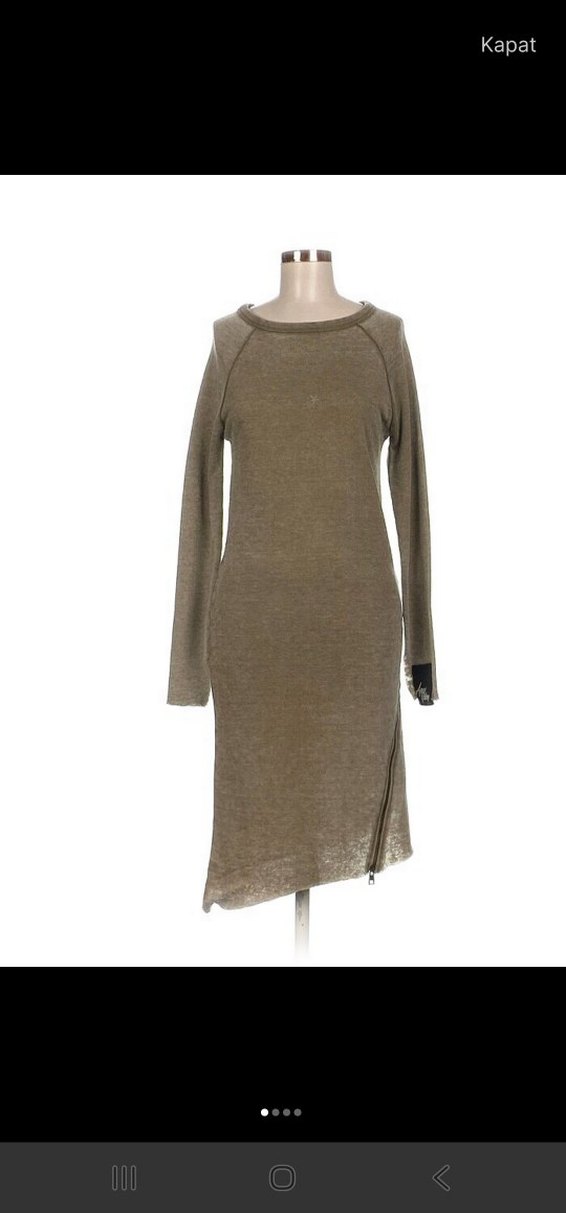 l beden ama kalibi ufaktir salas Bej tonlarında yumuşak kumaştan, uzun kollu ve salaş kesimli kadın elbisesi. Yuvarlak yaka ve yan fermuar detayı ile günlük kullanım için uygundur.