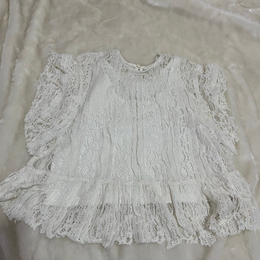 Uzun kollu, yuvarlak yaka ve nakış detaylı dantel beyaz örme kadın bluz, bohem tarzda rahat kesimle günlük kullanıma uygun. içindeki atleti birleşik değil.
