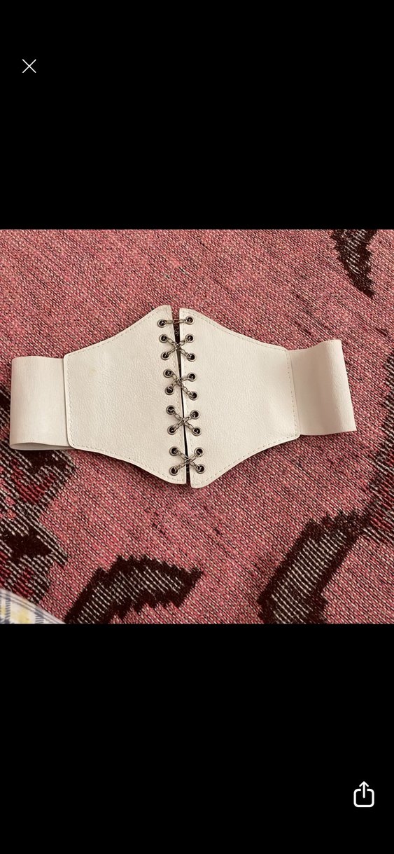 Beyaz deri korse kemer, bağcıklı detaylarla bohem ve Paris esintili eski tarzı yansıtıyor.
