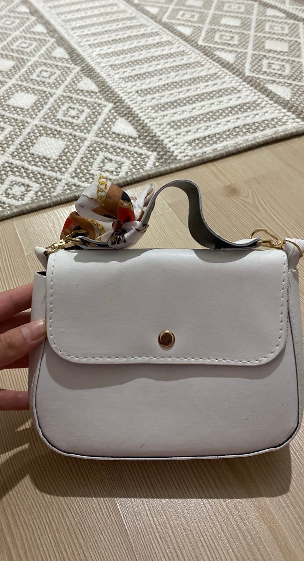 Bohem Beyaz Deri Tokalı Kadın Çanta