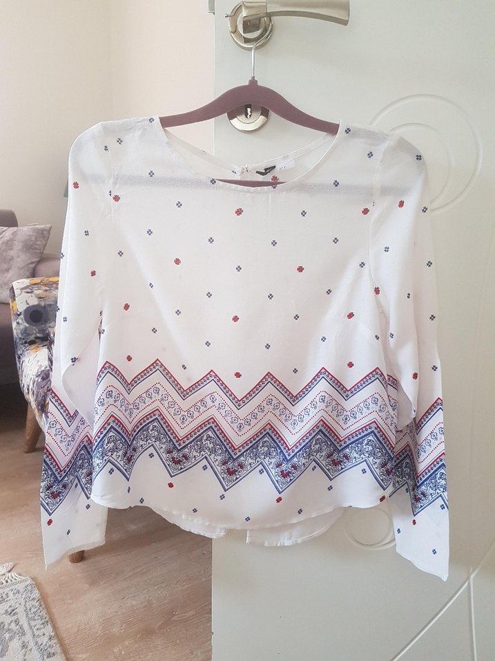 Bohem Beyaz Desenli Uzun Kollu Kadın Bluz