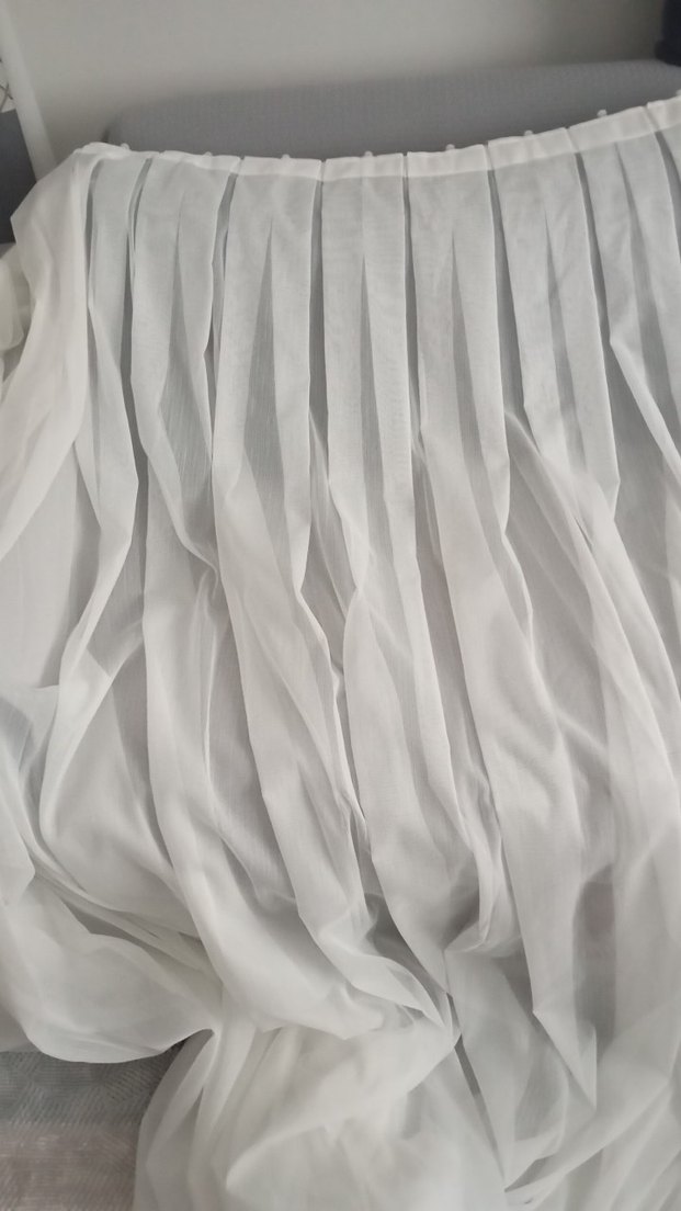 Dikey pileli, bohem tarzda beyaz tül perde. Hafif ve akışkan kuaşıyla ferah bir görünüm sunar.235 en 245 boy sıfır tül perde 1 e 3 pile