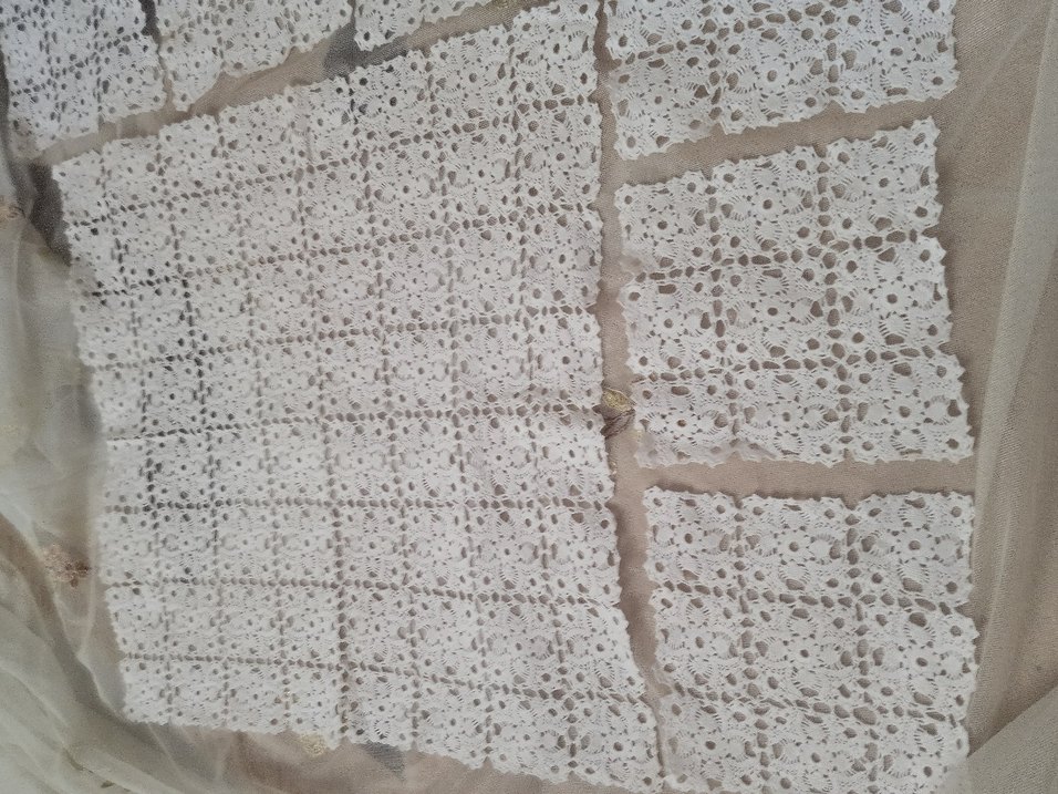1 adet büyük 2 adet küçük dantel Bohem tarzda, beyaz renkte, el işi dantel örtü, ince ve zarif açık işleme desenlere sahiptir.
