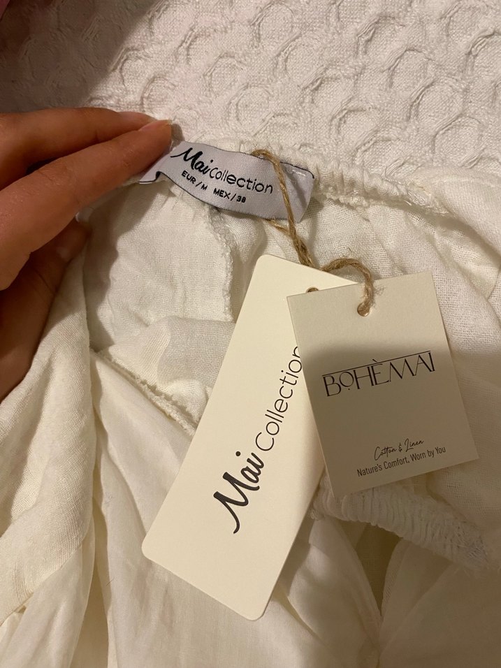 beyaz midi boy keten bohem elbise