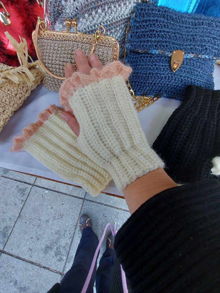 Bohem Beyaz Örgü Parmaksız Eldiven siparis alinir