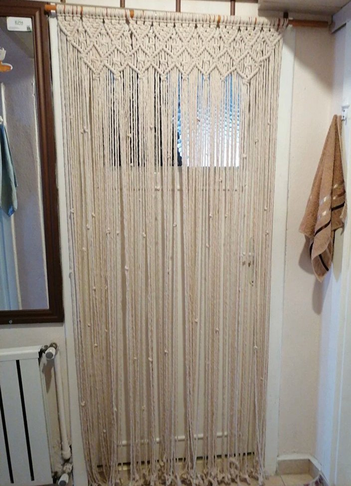 100*200boyutunda, bohem tarzda beyaz ve desensiz perde. Trendyoldan alındı hiç kullanılmadı o yüzden fotoğraflarını siteden aldım site fiyatı 738₺