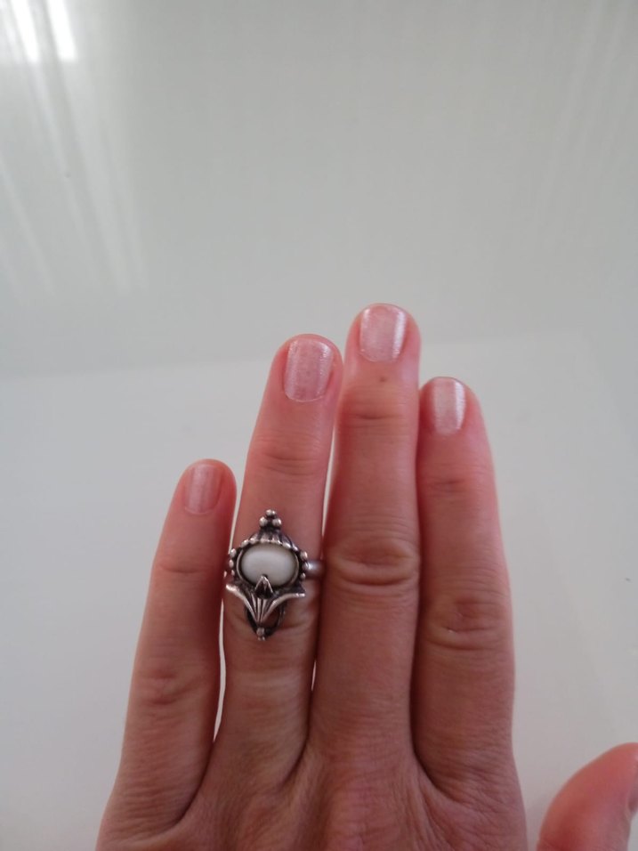 Bohem tarzda, beyaz renkte, vintage görünümlü kadın yüzüğü. Günlük kullanım için zahmetsiz şıklık sunar.
