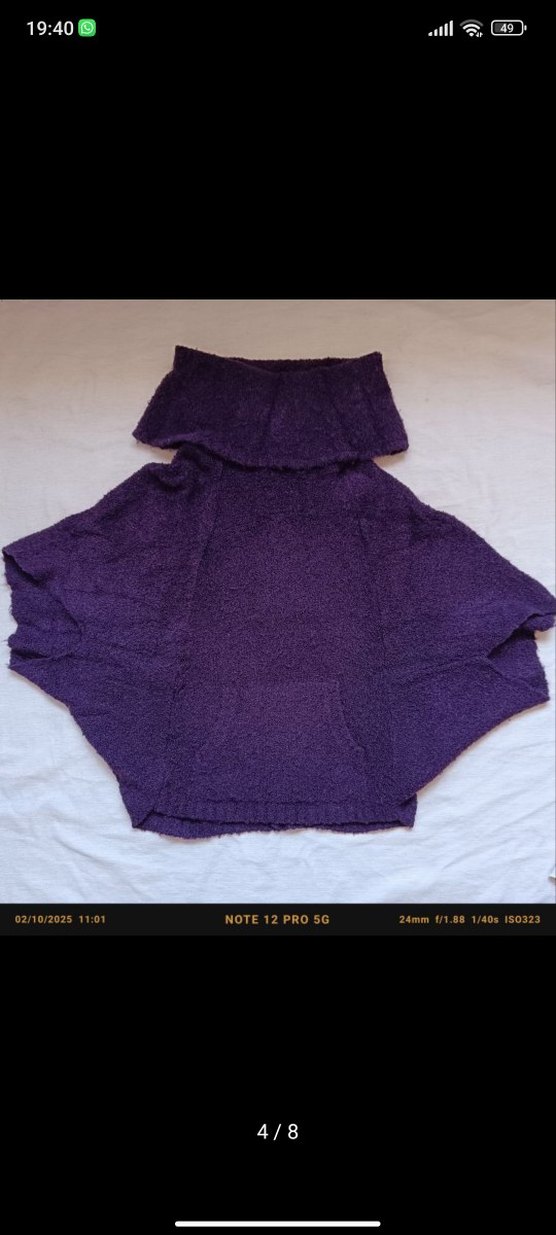 Mor renkli, boğazlı ve kolsuz, kısa kesim, bol kesim kadın kazak. Örgü dokusu ve rahat bohem tarz sunar. Mor renkte LC Waikiki Casual serisinden salaş bir kazak bedeni Small ust kısmı uzun ve geniş kesimli bu sayede omzuna düşürerek ya da bol bir şekilde kullanabilirsin istediğin tarza göre omuzdan salaş durabilir ya da yukarıda kalabilir kolları da bol kesim