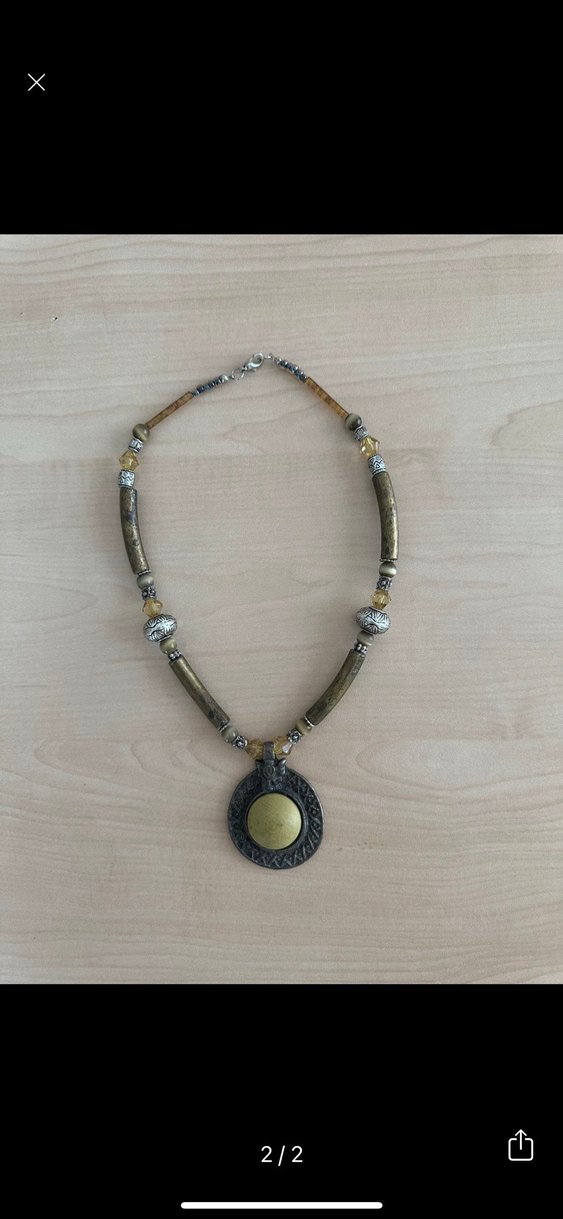 boncuklu, yeşil ve altın detaylı, bohem tarzda kadın kolyesi. Günlük kullanıma uygundur.