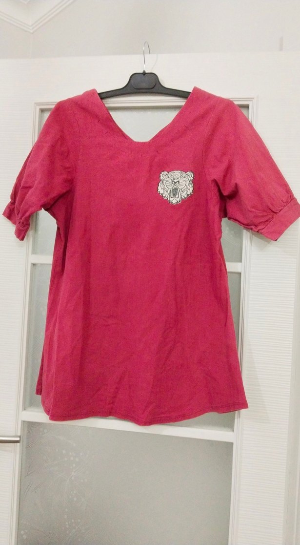 Bohem tarzı, kısa kollu, ön yaka u şeklinde arka kısmı V şeklinde bol kesim kiremit renginde hamile bluz. geniş kalıp giymek isteyenler için de uygun ve şık. ön sol göğüs kısmında kaplan baskılı.Ürün keten kumaştan üretilmiştir. Günlük kullanım için uygundur. ürünün geri iadesi yoktur