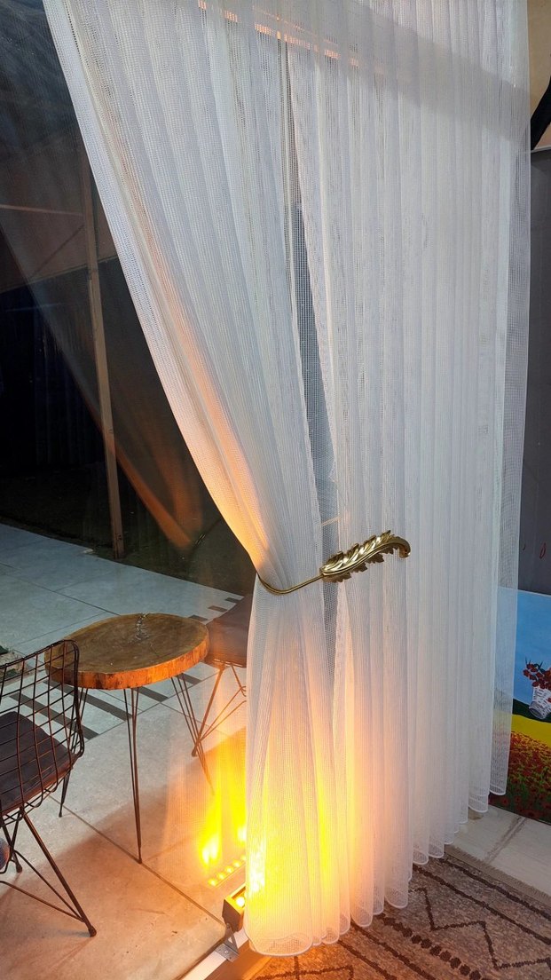 Hafif beyaz tül perde, bohem tarzda mekâna yumuşak ve ferah bir hava katar.