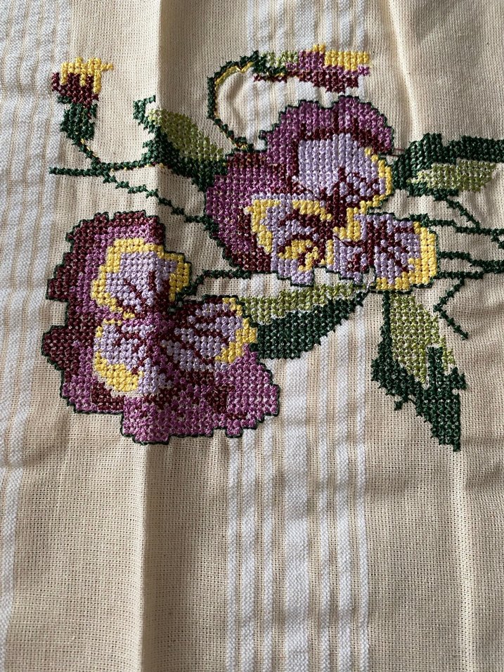 Mor ve sarı çiçekler ile yeşil yaprakların bulunduğu, el nakışı bohem tarzında çiçek desenli yastık kılıfı 2 adet fiyatıdır.