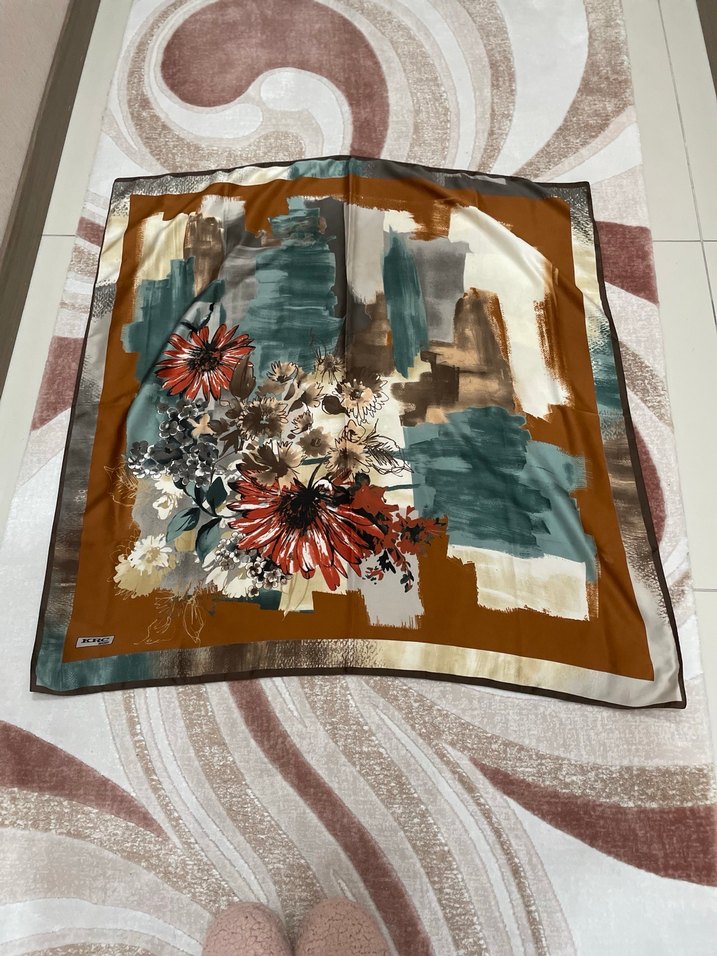 Bohem tarzda, kahverengi ve yeşil tonlarında çiçek desenli ve drapeli kadın eşarpDüzgün sentetik kumaştan yapılmıştır.