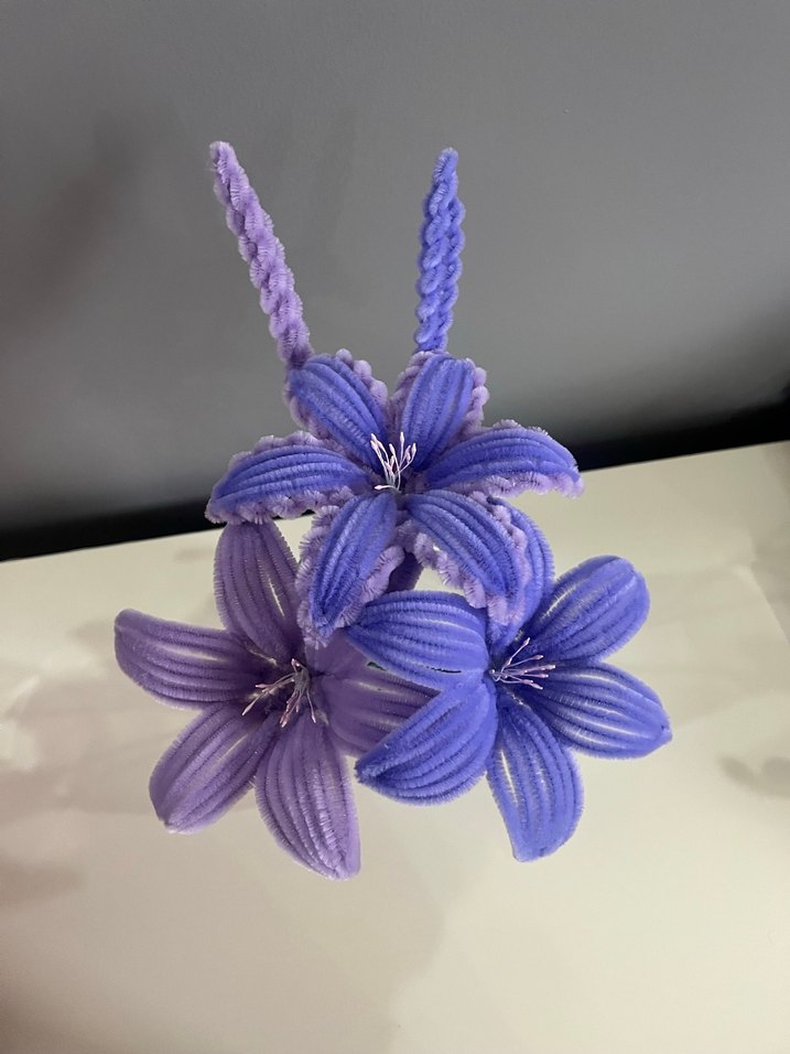 Mor renkli, el yapımı çiçek. Şönilden çiçekler. Renklerini seçebilirsiniz.Vazo ile gönderilmemektedir. İsteyene fiyat farkıyla buket yapılır.