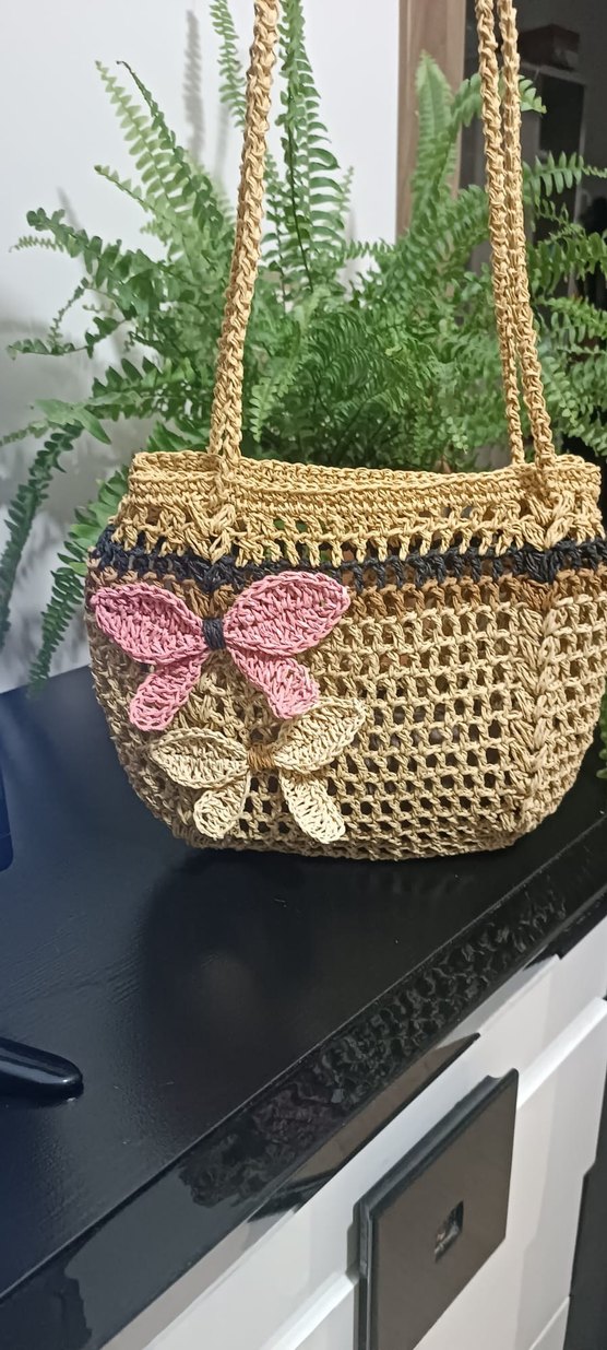 Bu kahverengi örgü kadın çantası, renkli çiçekli dantel detaylara sahiptir. Bohem tarz için uygundur ve uzun askılarıyla kullanımı rahattır.kagit ipten