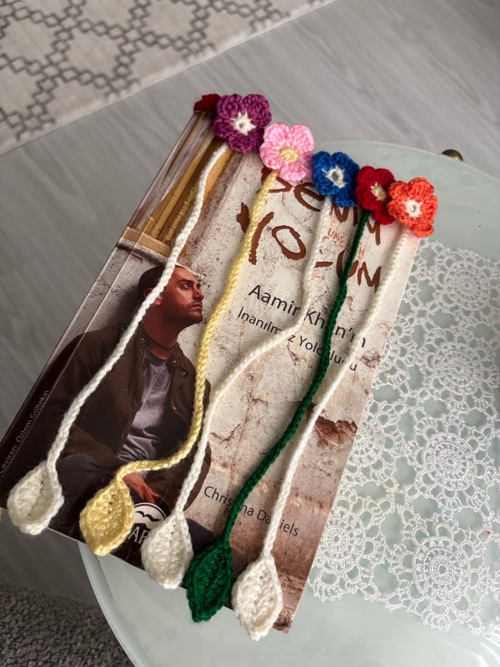 Renkli çiçek desenli, yaprak uçlu, bohem tarzı el örgüsü kitap ayraçları. Kitap sayfalarınızı özel bir dokunuşla işaretleyin. Adet fiyatı 50 tl