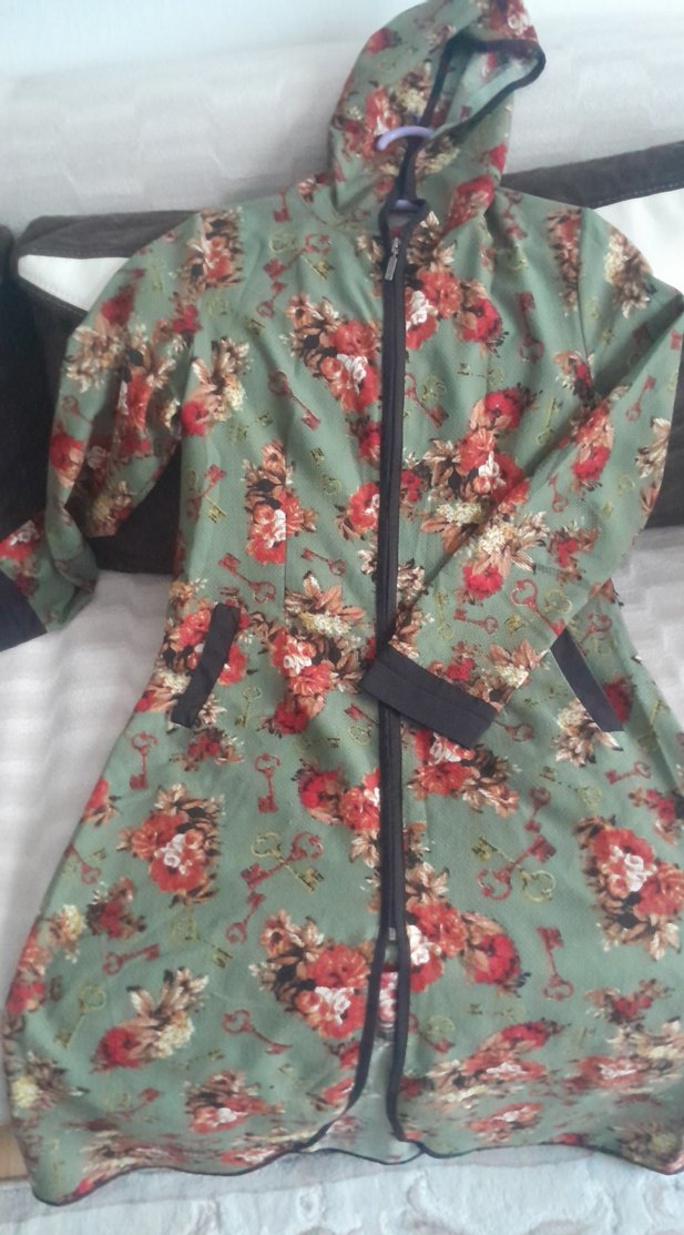 Bu dar kesim uzun , yüksek yakalı ve fermuarlı. Sentetik kumaştan yapılmış, koyu yeşil tonlarında vintage çiçek desenli, bohem ve avangart tarzları birleştirir.