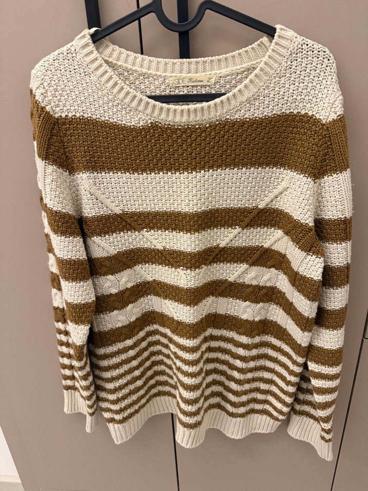 Bohem Çizgili Kahverengi Kadın Triko Kazak