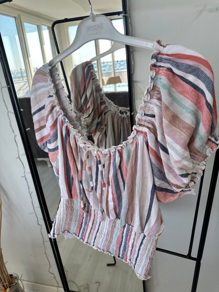 . Pastel tonlarda çok renkli batik deseni ve pilili detaylarıyla bohem tarzını yansıtır.