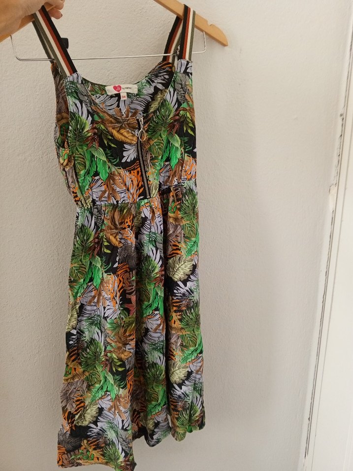 Askılı, straplez yaka ve dökümlü tasarımlı bohem uzun elbise. Sentetik kumaştan, çok renkli doğa desenli, günlük sokak stiline uygun.