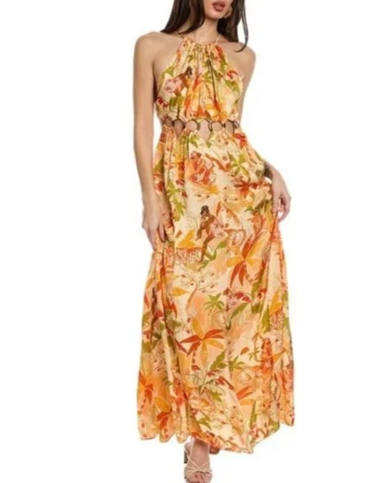 FARM Rio'nun Kum Leopar Ormanı Maxi Elbisesi ile egzotik zarafeti kucaklayın. Bu canlı maxi elbise, orman ve hayvan temalarını zahmetsizce harmanlayan, hareketli renk ve desen karışımına sahiptir. Hafif kumaşı ve askılı yakası hem rahatlık hem de şıklık sağlar. Yaz kaçamakları veya gündelik şık etkinlikler için mükemmel olan bu elbise, kesinlikle dikkatleri üzerine çekecek iddialı bir parça olarak öne çıkıyor.