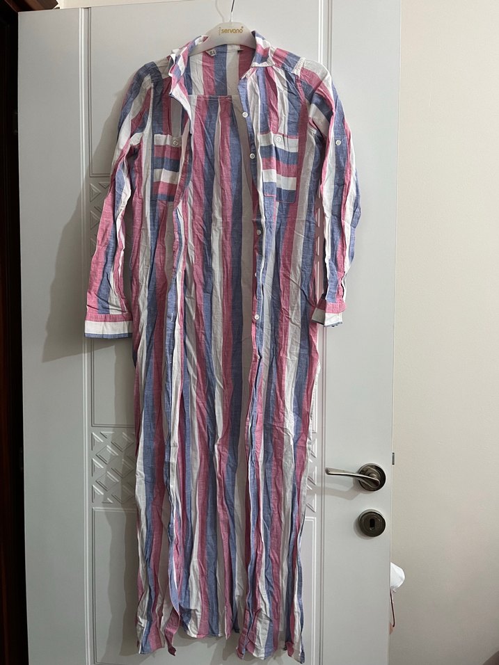 Bohem tarzda, çok renkli pastel bağlama desenli uzun kollu ve gömlek