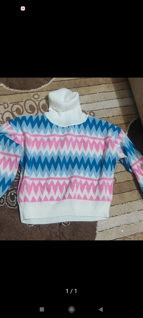 Bohem tarzda çok renkli, balıkçı yaka, uzun kollu, kısa kesim örgü kazak. Rahat ve günlük kullanım için uygundur.